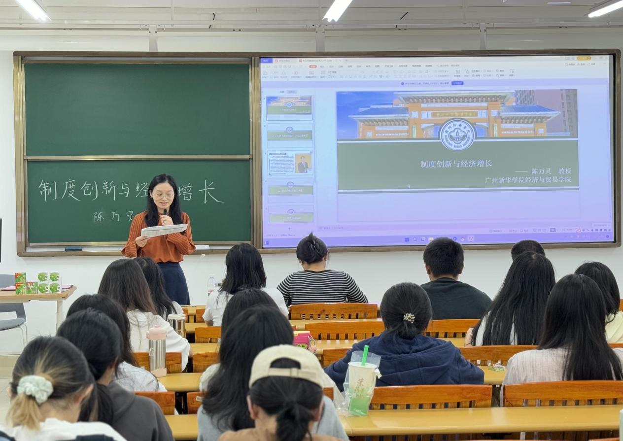 11月18日,广东外语外贸大学国际经济贸易研究院教授、Beat365中国唯一官方网站经济与贸易学院国际经济与贸易专业学科带头人陈万灵作题为“制度创新与经济增长”的学术讲座。讲座吸引了相关专业师生前来聆听。本次讲座由国际经济与贸易专业副主任廖倩主持。