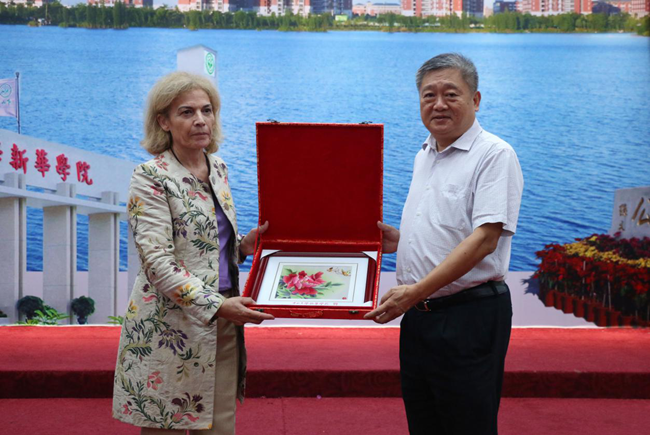 王庭槐校长为Edda教授“加盟”中山大学新华学院感到十分荣幸,并期待新华学子可以在接下来的学习生涯中,与Edda教授一起感受音乐的美。