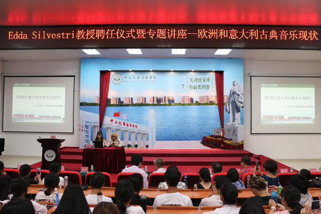 聘任仪式后,由Edda教授主讲的《欧洲和意大利古典音乐现状》专题讲座正式展开。此次讲座旨在全校范围内普及音乐知识,营造浓郁的音乐艺术教育氛围,将艺术的感染力和魅力辐射至全校师生,使师生了解音乐、热爱音乐,推动学校美育工作。