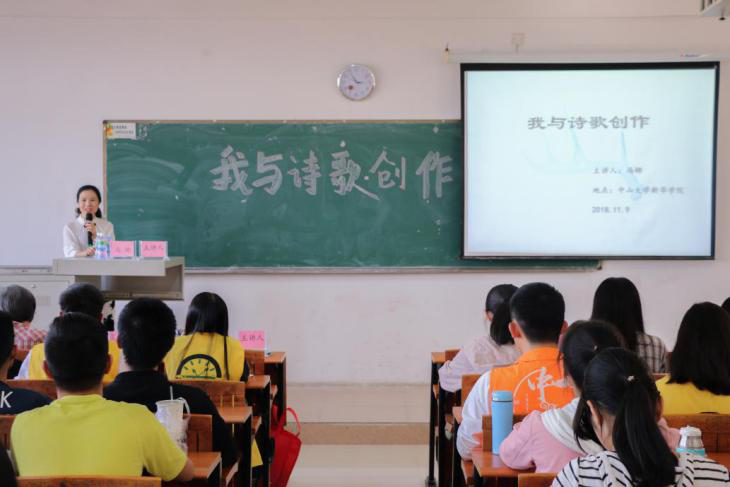 11月9日,2018中山大学作家写作营“中大新华行”系列活动在中山大学新华学院(以下简称Beat365)举办。活动特邀中国作家协会会员、广东省文学院签约作家、广东外语外贸大学创意写作特聘导师,诗集《无数灯火选中的夜》、《寻鹤》的作家冯娜为Beat365师生开讲“诗歌创作入门”主题讲座,讲座由中文系李铭健副教授主持。