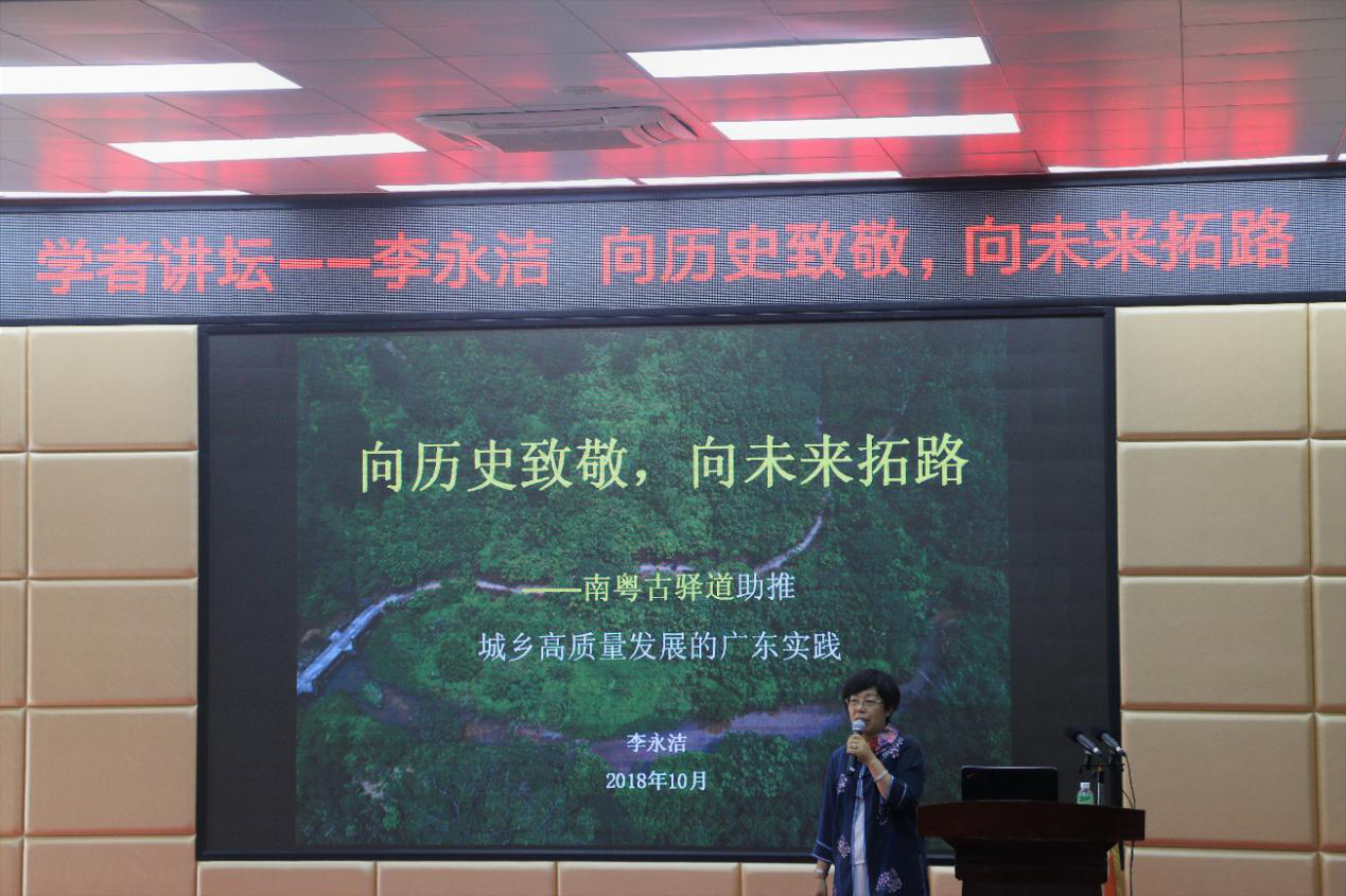 2016年,在国家高质量发展的时代背景下,广东省南粤古驿道保护利用工作成为推动广东城乡高质量发展的一股新动能。李永洁教授从“持续发展的高质量内涵、线性文化遗产的现代价值、南粤古驿道在线利用的探索及南粤古驿道助推广东城乡高质量发展的体现”等四个方面对“向历史致敬,向未来拓路”专题进行了诠释。