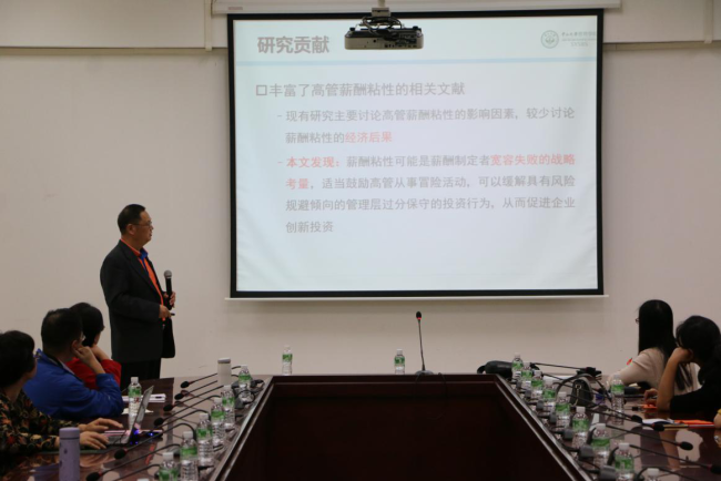 本次讲座紧扣党的十九大报告、五大创新理念关于经济发展的主题,将课堂学习同经济发展相结合,让师生们了解到高管薪酬存在粘性,同时开拓了师生们看待宏观和微观经济问题的眼界,指引了学生今后的论文写作方向。