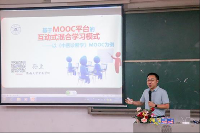 孙立针对《教育信息化2.0行动计划》中的“百区千校万课引领行动”,结合自身建设在线开放课程《中医与诊断》的经验,表示要做好一门视频公开课,除了要把课讲好,更要集“编剧”、“导演”、“演员”于一身。从课程的教学计划、教学方案,到每个时间点需要讲授的内容、每个内容的时长都需要仔细斟酌、把控。课程上线后,需要做好课程的运营管理,运用多样化的通讯、社交手段将分散在全国各地的学生集中起来,开展学习讨论。