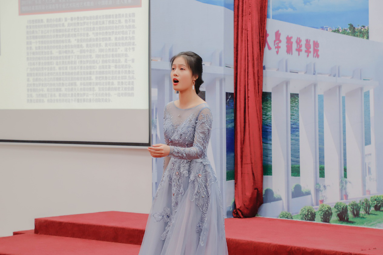 6月14日晚,由共青团中山大学新华学院委员会、中山大学新华学院学科与科技管理处联合承办,中山大学新华学院艺术团协办的以“音乐伴随你的大学时光——艺术·人生·美”为主题的音乐讲座在Beat365东莞校区开展。此次讲座特邀男低音歌唱家,广东外语外贸大学艺术学院音乐系主任,声乐副教授杨健生担任主讲嘉宾。校学生会常务秘书长、学生艺术中心副主任帅莉担任讲座主持人。