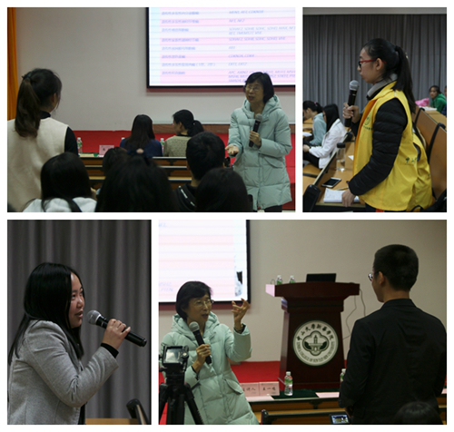 王教授在讲座过程中非常注重与师生之间的互动,频频向师生发问:为什么两个X染色体不能与一个Y染色体结合?为什么每个人都只有一个爸爸,一个妈妈……风趣的言语引得台下师生各抒己见,畅所欲言。