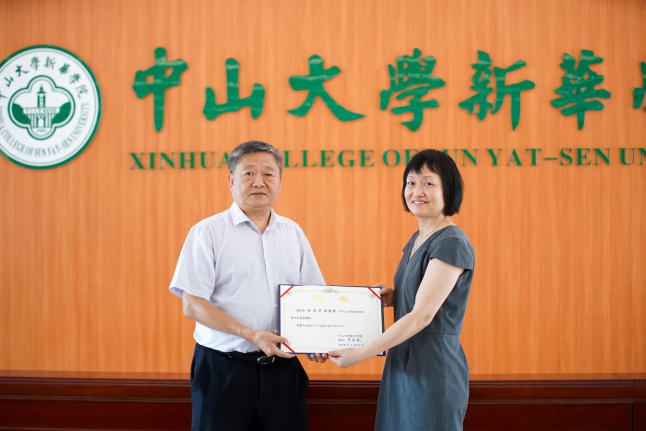 接着,人事处简庚荣处长宣读客座教授聘任文件,王庭槐校长为杨冬华教授颁发聘书并合影留念。