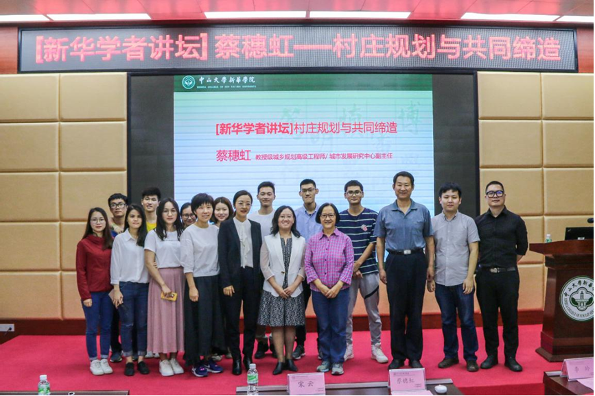 讲座开始前,关欣教授介绍了主讲人蔡穗虹教授的学术背景,并对蔡穗虹教授为中大新华学子带来精彩的讲座表示衷心的感谢。 讲座中,蔡穗虹从现阶段全国非常热门的话题 “乡村振兴”出发,讲述乡村规划的发展趋势和乡村建设,并分析以村庄规划的编制和实施为核心主题内容。针对资源与城乡规划系的专业性质,蔡教授重点阐释了四点,即对村庄的理解、乡村振兴战略政策解读、乡村规划的发展趋势和乡村建设与共同缔造。