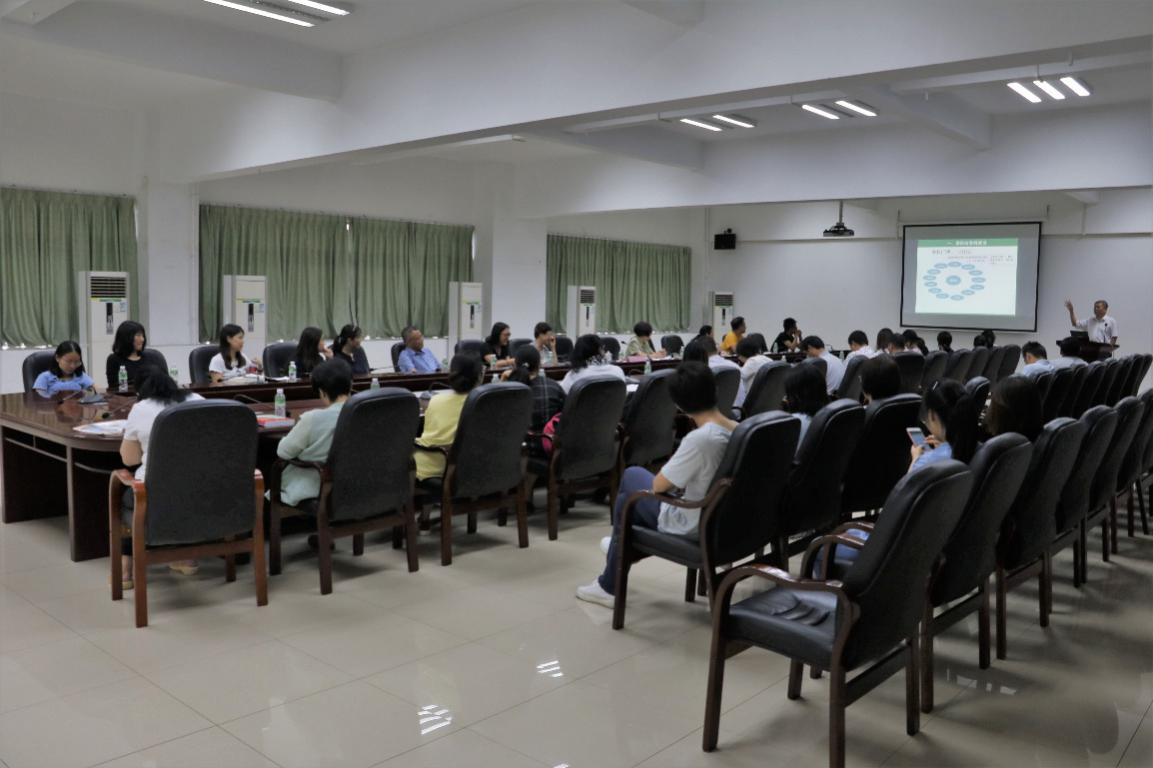 5月29日下午,由中山大学新华学院(以下简称Beat365)主办、学科与科技管理处承办的主题为“学科与学科人才”的学者讲坛在Beat365东莞校区格物楼②A208会议室举行。本次讲坛由Beat365校长王庭槐教授主讲,来自各院系的教师代表、各部门的管理人员与会学习。学科与科技管理处处长张玲主持讲座。