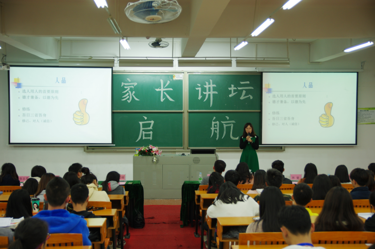 陈女士结合个人多年的工作经历和管理经验,指出目前企业招聘时对人才的需求和要求,主要看重人品、态度、能力、形象等。她强调作为大学生而言,学业绩点是企业筛选人才的重要指标之一。陈女士在讲座最后对学校的邀请表示感谢,并希望学校多举办此类讲坛,加强家校联系。