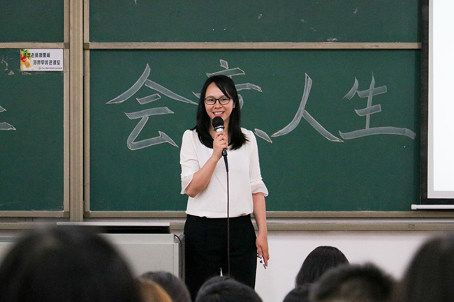 郑毓秀女士向同学们分享了实用的理财规划方法以及一些实用学习工具。谈及大学四年该如何学习,郑女士结合她在大学的规划和成长给出了“认真学,好好玩”的建议。