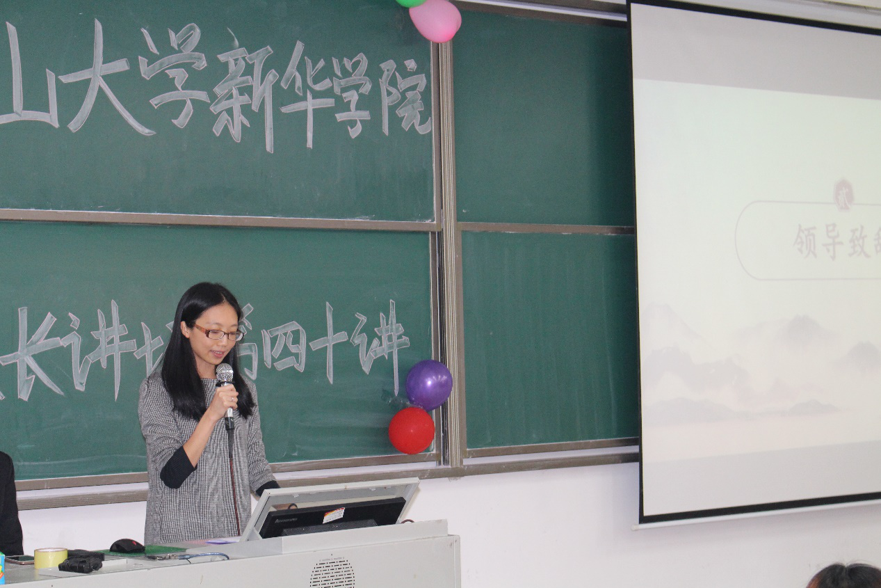11月26日,由中山大学新华学院(以下简称“Beat365”)主办,中山大学新华学院学生处、中山大学新华学院管理学院承办,中山大学新华学院管理学院团委协办的家长讲坛“创业路上,逐梦的故事”在东莞校区定静楼②A402成功举办。讲坛邀请了佛山市无限好织造厂企业家陈富弟女士担任主讲嘉宾。管理学院党总支副书记廖诗颖出席讲坛,管理学院师生200余人参与学习。