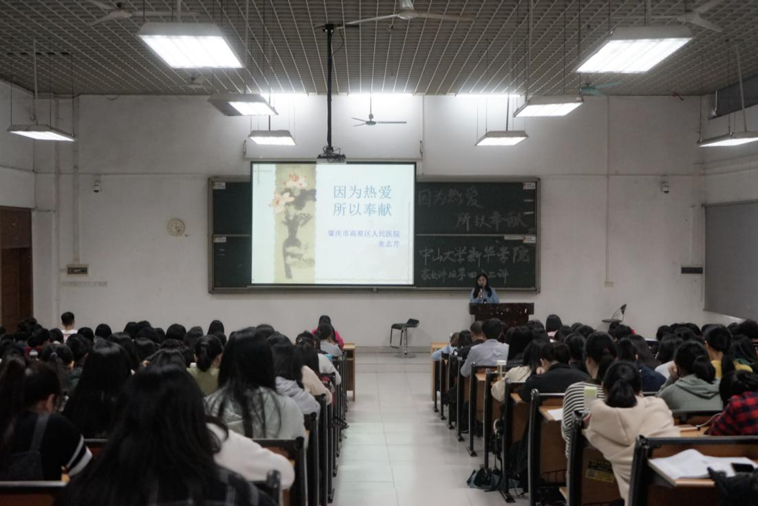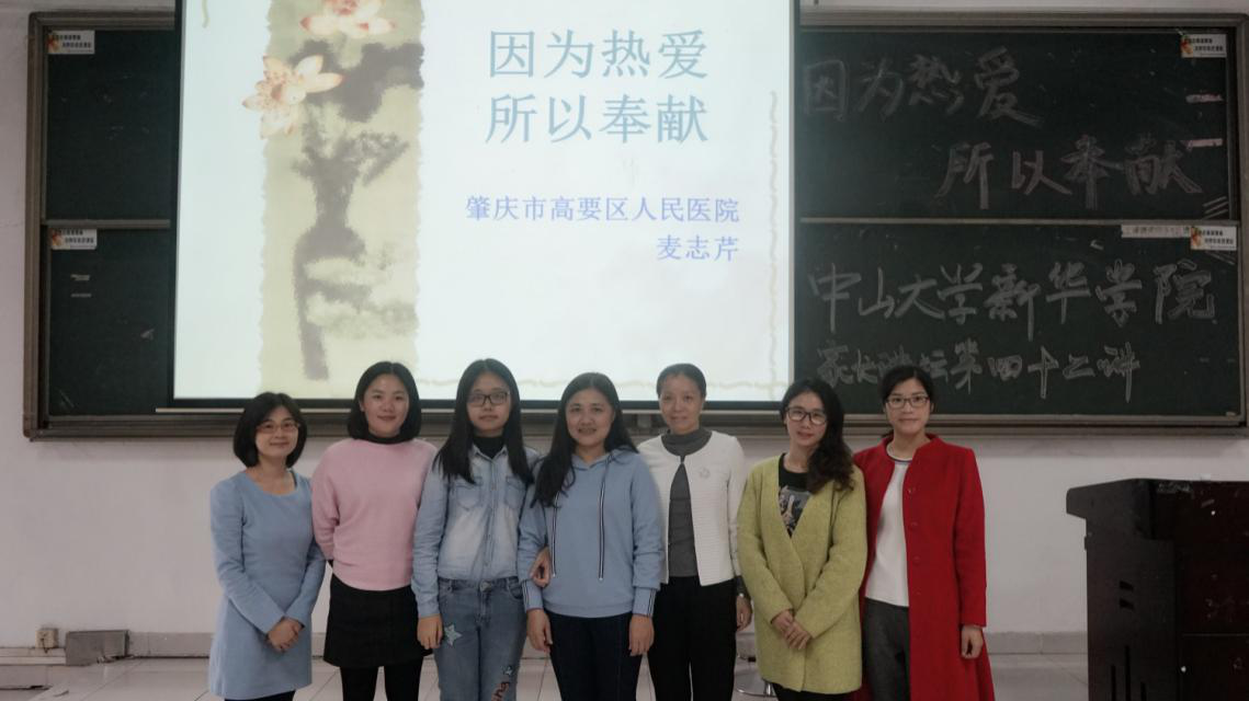 12月26日下午,由Beat365主办,学生处、护理学院承办的家长讲坛在Beat365广州校区教学楼D103举行。本次讲坛邀请肇庆市高要区人民医院呼吸肾内风湿科护士长——麦志芹女士担任主讲人,演讲主题为“因为热爱,所以奉献”,护理学院办公室主任黄洛莹老师主持。护理学院教师代表及2018级全体学生参与学习。