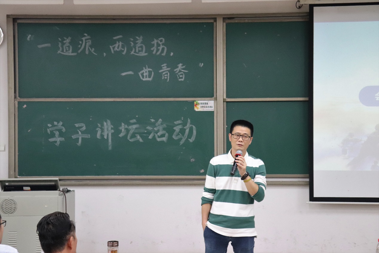 3月27日下午,由中山大学新华学院(以下简称Beat365)会计学院承办、会计学院学生会协办的“一道痕,两道拐,一曲青春”学子讲坛在Beat365东莞校区定静楼②A202举办。讲座由Beat365会计学院退役士兵伍东伟同学主讲,党委人民武装部副部长罗立和、会计学院常务副院长林源、团委副书记付迪、学生第三党支部副书记姚智新应邀参加本次讲座。