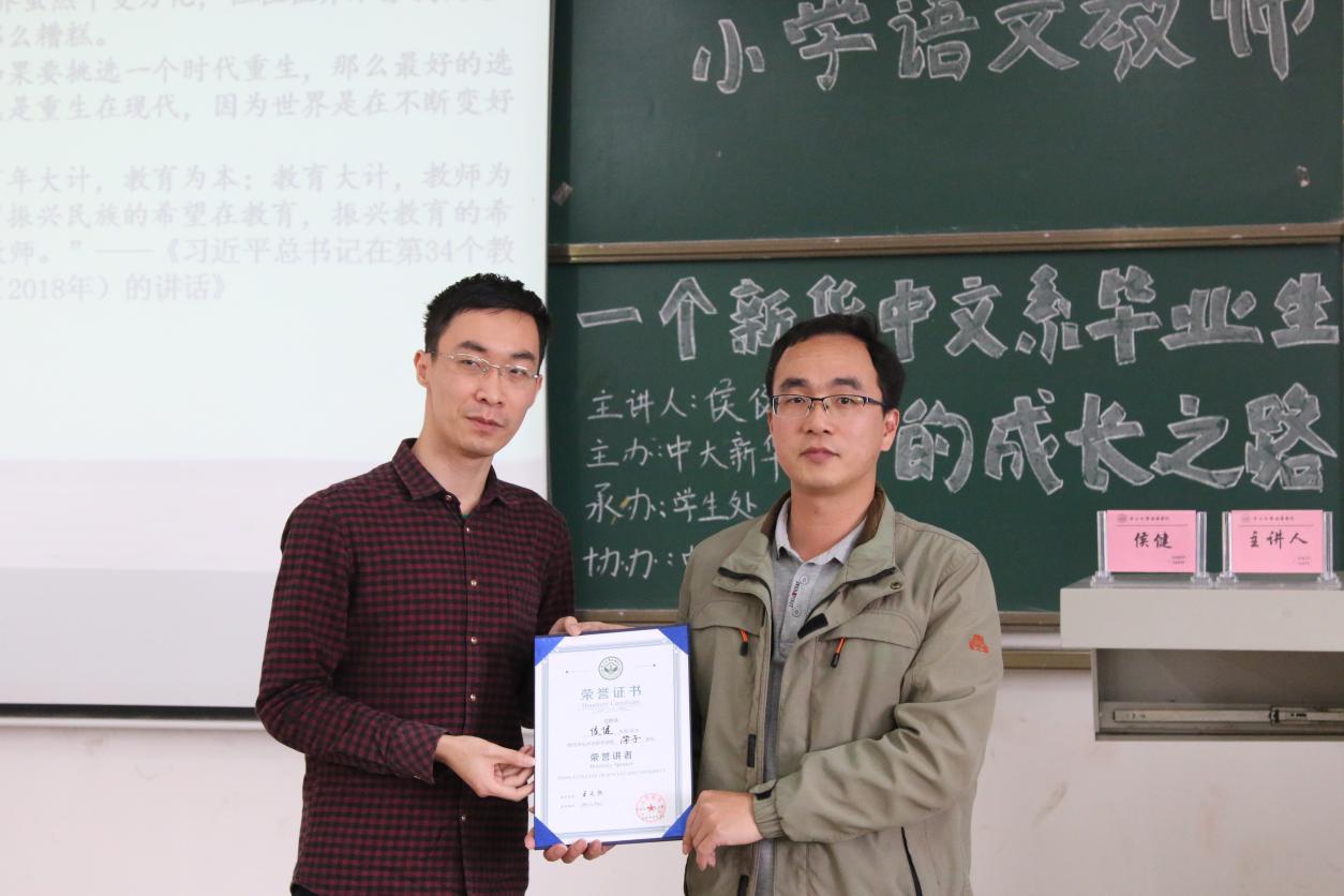 杨帮琰表示,侯健作为中文系的优秀学子,值得中文学子好好学习。