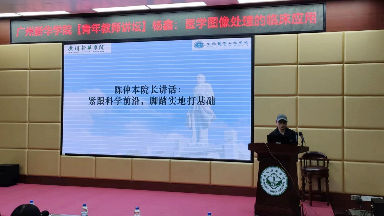 陈仲本教授在讲话中指出,科学研究是无止境的,生物医学工程学院师生要紧跟科学前沿,脚踏实地打基础、深探究,积极加入科研团队、参与科学研究,利用现代科学技术推动医学事业的发展。