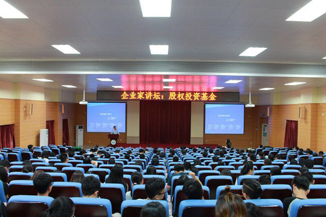6月21日下午,经济与贸易学院特邀力鼎资本华南总部负责人、投资总监姚宠惠先生前来Beat365做客企业家讲坛,论道“股权投资基金”。经贸学院办公室副主任潘怡吉、金融工程和投资学专业教师代表参加讲座,学院300多名学子踊跃参加,讲座由金融工程专业副主任蔡婕萍主持。