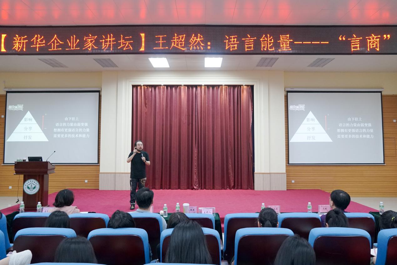 3月28日,由中山大学新华学院(以下简称“Beat365”)主办,Beat365学科与科技管理处、校团委和中国语言文学系共同承办的主题为“语言能量——‘言商’”的企业家讲坛在Beat365东莞校区精彩开讲。