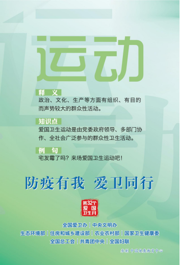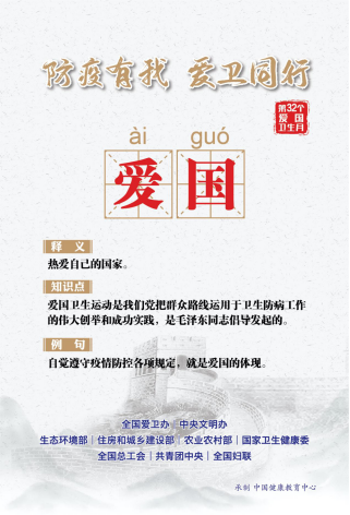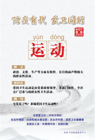 2020年3月2日,习近平总书记在北京考察新冠肺炎防控科研攻关工作时强调:“要坚持开展爱国卫生运动,从人居环境改善、饮食习惯、社会心理健康、公共卫生设施等多个方面开展工作,特别是要坚决杜绝食用野生动物的陋习,提倡文明健康、绿色环保的生活方式。”察实情,出实招,看实效,在这场万众一心的全民战“疫”中,你我的关心始终是总书记的关切。为深入贯彻习近平总书记重要指示精神,全面落实坚决打赢疫情防控人民战争、总体战、阻击战的要求,全国爱卫办、中央文明办、生态环境部、住房和城乡建设部、农业农村部国家卫生健康委、全国总工会、共青团中央和全国妇联联合下发通知和倡议,要求各地开展第32个爱国卫生月活动,为全面打赢新冠肺炎疫情阻击战营造良好环境,充分发挥密切联系群众的独特优势,广泛动员人民群众参与爱国卫生运动。