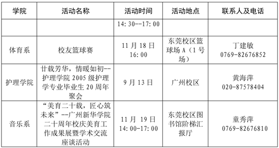 校庆日前后学校主要活动安排