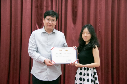 讲座结束后,中山大学新华学院举行仪式敦聘美国麻省理工学院教授、美国Abitech公司总裁孙友顺博士为信息科学学院客座教授,刘婉莉校长助理为孙友顺博士颁发聘书。