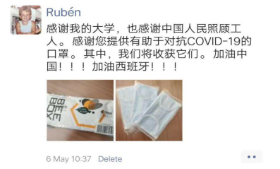 千里寄口罩,礼轻情意重。外事处得知身处疫情较为严重地区的外籍教师急需口罩等防疫物资时,及时向学校疫情防控工作领导小组汇报,获批后迅速着手为外籍教师寄送防疫物资的工作。外事处潘茜、陈楠老师及时与外籍教师联系沟通,先后将“防疫爱心包”寄送至目前处于英国、美国、意大利、西班牙以及国内各地的外籍教师的手上。
