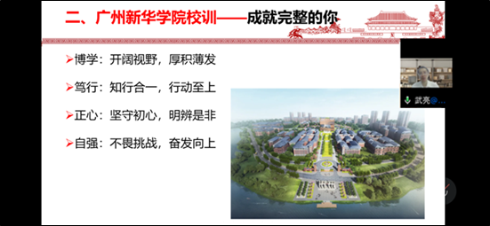 课程围绕“什么是校训”“新华的校训”以及“大学的规划”三个部分展开,旨在引导学生理解校训内涵,科学规划大学学习与生活。