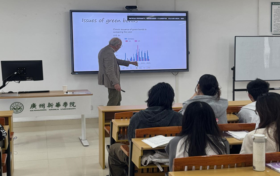 整场示范课中,Anderson教授凭借高屋建瓴的学术视野、深入浅出的双语阐释,将复杂的绿色金融理论转化为生动的知识盛宴。他严谨求实的治学精神、深厚扎实的学术造诣,以及对新华学子春风化雨般的关怀与倾囊相授的指导,令在场师生深受触动。