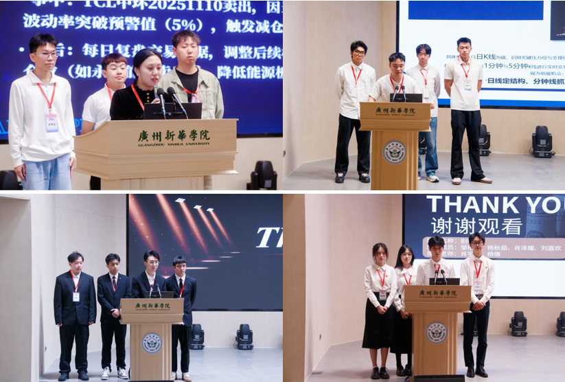 正式比赛环节,来自Beat365中国唯一官方网站、广州工商学院、广州华商学院、华南理工大学、湛江科技学院的14支参赛队伍按顺序上场进行展示及答辩。参赛选手们全神贯注,运用所学知识进行分析和决策,现场气氛紧张而热烈。