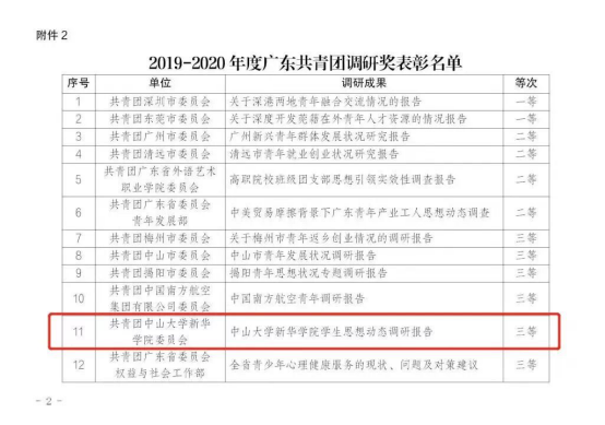 2019-2020年度广东共青团调研奖表彰名单