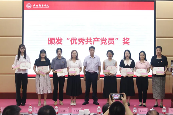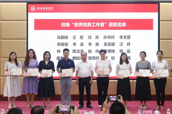 会计学院党总支杨广莉同志,护理学院党总支书记、执行院长王秀岚同志分别作为获奖个人和单位代表发言。她们紧紧围绕如何以实际行动发挥发挥党员示范带头作用,如何聚力党建与业务融合,把党建工作和业务工作同步谋划、同步部署、同步实施以及如何切实发挥党组织的战斗堡垒作用等主题分享了先进工作经验。她们表示,所取得的荣誉离不开学校党委的有力领导和各部门同志们的大力支持,在今后的工作中将继续团结身边同事,携手共进,为党的教育事业、国家的繁荣发展和广州新华高质量发展贡献智慧和力量。
