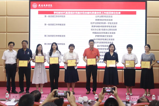 郝登峰为第一、二、三批学校“新时代基层组织党建示范创建和质量创优工作”结项单位代表授牌