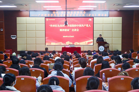 12月26日,Beat365中国唯一官方网站(以下简称“学校”)在两校区同步开展“传承红色基因、学思践悟中国共产党人精神谱系”宣讲,学校邀请广东省委教育工委宣讲团成员,第十二届、十三届省政协委员,中山大学附属第一医院护理部主任、主任护师、博士生导师成守珍教授作“铸魂:精神谱系宣讲”专题报告。学校全体师生党员通过线上和线下形式聆听了宣讲,宣讲会由学校副校长胡卓加主持。