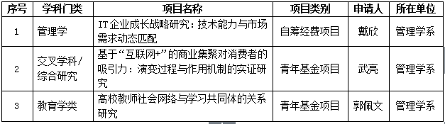 【喜讯】管理学系获批2016年度三项教育部人文社会科学研究项目