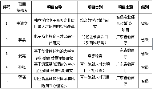 据了解,管理学系一直致力于“科研优学科”的建设目标,借助母体学校中山大学及国内外名校的优势资源,充分发挥国内外学科带头人领军作用,定期邀请国外教授(如全竞教授、张国英教授)和专业学科带头人开展科研培训,并以学科带头人为首带动新人冲击课题申报和高水平论文的撰写和发表,通过科研进一步推动学科专业建设。除获得本次教育部立项的项目外,2015-2016学年度该系获立项在研的省级或以上的项目共计5项(具体信息如表2),充分体现了管理学系在学术建设上所取得的成果。