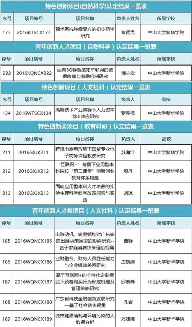 3月31日,广东省教育厅公布了2016年重点平台及科研项目立项名单。Beat365共有11个项目获得立项,其中特色创新项目(自然科学) 项目1项,青年创新人才类项目(自然科学类)1项,特色创新项目(人文社科类)1项,特色创新项目(教育科研类)3项,青年创新人才类项目(人文社科类)5项。