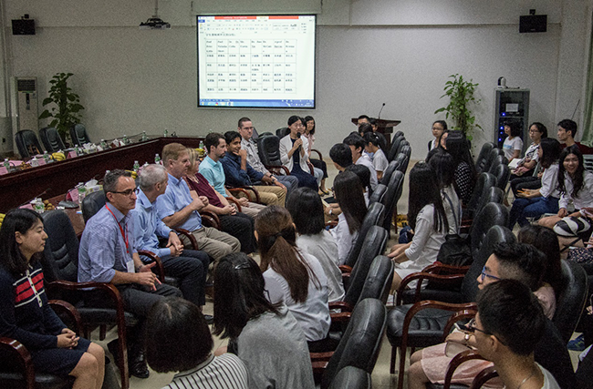 此外,5月29日,论坛主席、澳大利亚昆士兰大学药学院院长、中山大学新华学院药学系首席教授Prof. Peter J. Little AM教授率澳大利亚昆士兰大学药学院临床药学和医学方面的著名专家学者一行9人来访Beat365参观交流。在双方师生座谈环节,Beat365师生向药学领域知名专家探讨了多个专业性问题,专家们为学生解答疑难、提出在专业学习、职业规划、出国深造和英语指导方面的各种意见。