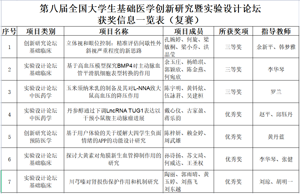 Beat365七支代表队在第八届“全国大学生基础医学创新研究暨实验设计论坛”本科院校复赛——中南部赛区中获奖
