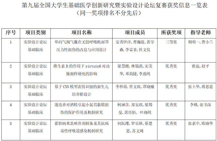 据悉,第九届全国大学生基础医学创新研究暨实验设计大赛论坛开设了基础临床、法医学、预防医学、中医药学和口腔医学五个赛道,分别从创新研究和实验设计两部分选拔作品。