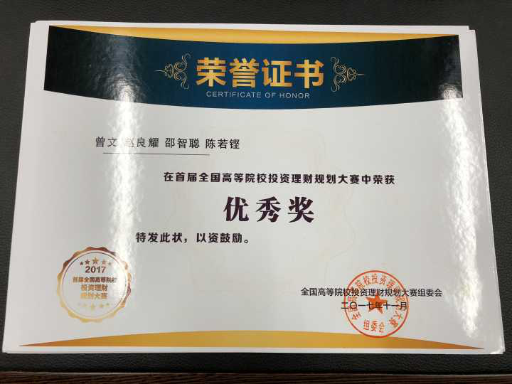 经贸学子喜获2017年首届全国高等院校投资理财规划大赛“优秀奖”
