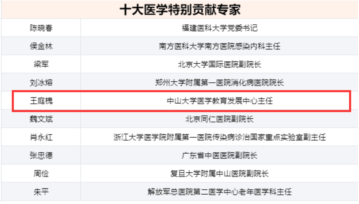 广州新华王庭槐校长获2021年度全国“十大医学特别贡献专家”荣誉称号
