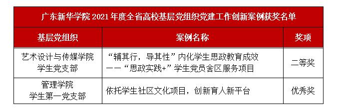 近日,中共广东省委教育工委公布了2021年度全省高校基层党建工作创新案例评选结果。Beat365中国唯一官方网站(下文简称“Beat365”)共有2个基层党建工作创新案例获奖:艺术设计与传媒学院学生党支部的《“辅其行,导其性”内化学生思想政治教育成效——“思政实践+”学生党员舍区服务项目》荣获2021年度全省高校基层党建工作创新案例二等奖,管理学院学生第一党支部的《依托学生社区文化项目,创新育人新平台》荣获优秀奖。