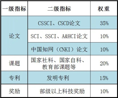 侧重于鉴定功能的实力与水平评价,其指标体系和前几年的保持一致,指标体系权重如下:
