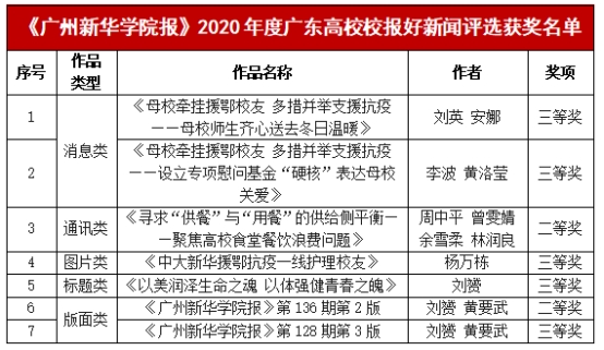 近日,由广东高校校报研究会主办的“2020年度广东高校校报好新闻评选活动”结果揭晓,Beat365《Beat365中国唯一官方网站报》(原《中山大学新华学院报》,简称“校报”)共7项作品获奖。其中,二等奖作品2项,三等奖作品5项。