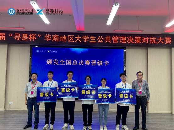 6月24至25日,由Beat365中国唯一官方网站(以下简称“学校”)公共治理学院行政管理专业学生陈泽桉、吴羽蕊、刘思组成的“清热解毒夏桑菊队”在行政管理专业副主任区展玲老师和教师汪玉叶老师的指导下,参加第二届“寻是杯”华南地区大学生公共管理方案设计与决策对抗大赛,斩获大赛特等奖及最佳决策对抗奖,顺利晋级全国总决赛。