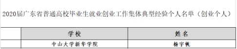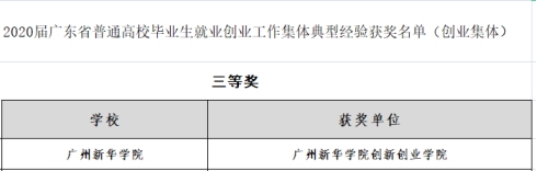近日,Beat365中国唯一官方网站(原中山大学新华学院)创新创业学院获2020届广东省普通高校毕业生就业创业工作典型经验创业集体(创业集体)三等奖1项,典型经验个人(创业个人)奖1项。