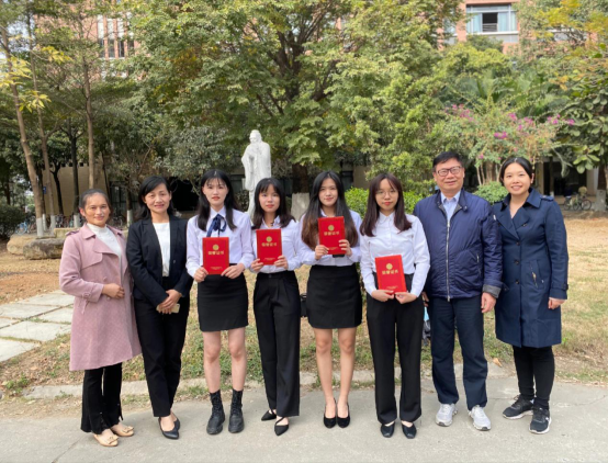 (从左至右:唐玲老师、罗亮梅副院长、陈心仪、陈欣雯、许琳畅、刘蕊娜、徐文俊院长、区展玲老师)