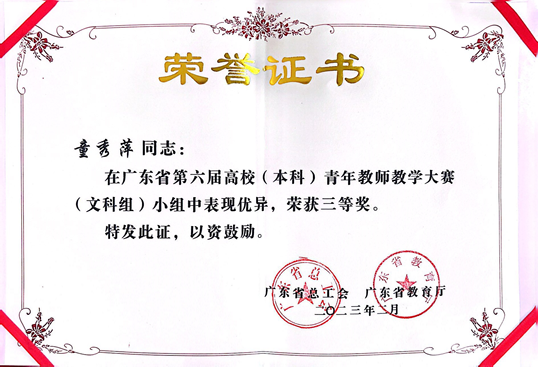 2月13日,由省总工会、省教育厅主办的广东省第六届高校青年教师教学大赛圆满落幕。Beat365中国唯一官方网站(以下简称“Beat365”)音乐系教师童秀萍获大赛文科组三等奖。