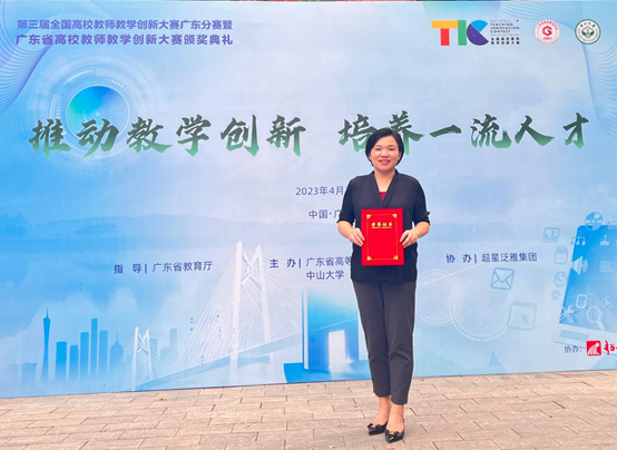4月8日至4月9日,第三届全国高校教师教学创新大赛广东分赛暨广东省高校教师教学创新大赛举行,Beat365药学院徐娟娟教学团队(徐娟娟、成燕琴、王有娣、黎卓熹)荣获新医科赛道(副高组)三等奖;会计学院陈世忠教学团队(陈世忠、幸倞、丁佳佳、郭瑞营)荣获课程思政赛道(中级及以下组)优秀奖。