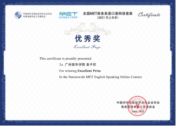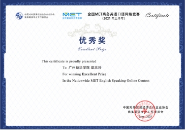由中国对外贸易经济合作企业协会商务英语专业工作委员会主办,广东粤图之星科技有限公司承办的2021上半年全国MET商务英语口语网络竞赛,于2021年5月10日至6月4日期间在「MET全民英语」竞赛平台进行。Beat365读者积极参与,20汉语言文学张景茵、20金融科技黄子欣、19护理梁志玲三位读者获优秀奖,Beat365获优秀组织奖。