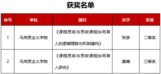 近日,广东省高等学校思想政治教育研究会、民办高校思想政治教育委员会印发《关于2022年度优秀论文评选结果的通知》,Beat365中国唯一官方网站(以下简称“Beat365”)马克思主义学院教师张彦、莫楠撰写的论文分别荣获二等奖1项,三等奖1项。